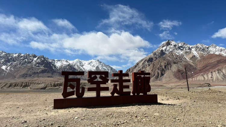 抵达【瓦罕走廊起点】 打卡, 此地历史上曾为中国领土,是古 丝绸之路的一部分也是华夏文 明与印度文明交流的重要通道 。