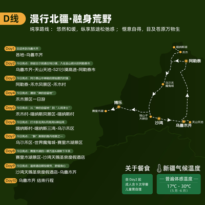当地参团产品接机/站说明:出发当日请自行抵达乌鲁木齐,抵达乌鲁木齐后自行前往酒店入住休息。若您预定了当日抵达的航班/火车,请提前2天20:00前在订单中备注或向客服提供航班号/车次,我们为您安排免费专车接送机/站,一单一接送,不拼车,不等候,专享接机/站服务。我们会根据实际乘坐人数,调整接机/站车型。 如果信息提供不完整或超时未提供者,我们将不再提供该项服务,也无任何费用退还,敬请理解。3.产品特色下方有双飞产品和当地参团产品的链接,您可以选择您需要的产品。